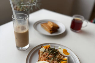 ホットサンドやスイーツがメインのメニュー。朝食や昼下がりの午後にふらっと立ち寄って、贅沢な空間と美味しいコーヒーで最高の気分になれること間違いない。
